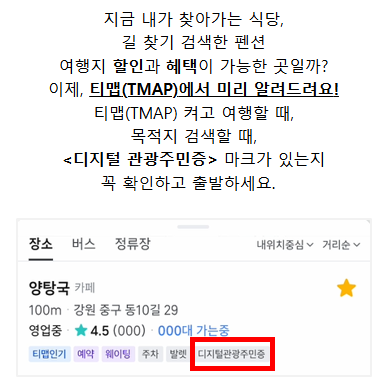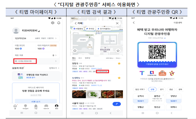 2025년 7월 29일부터는 SK텔레콤의 내비게이션 앱 ‘티맵(TMAP)’을 통해 디지털 관광주민증을 간편하게 발급받을 수 있습니다.