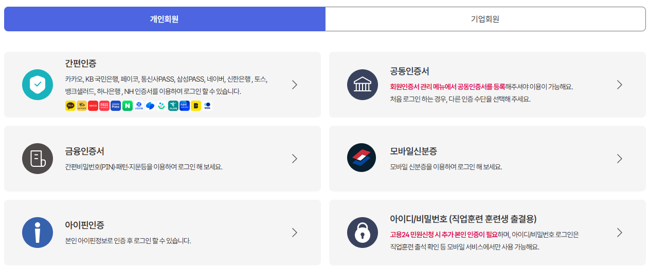 직업 능력개발 → ‘국민내일배움카드’ 클릭