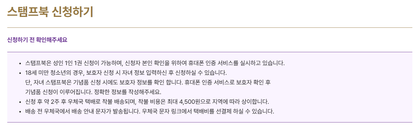 1. 스탬프 북 신청은 2025년 8월 15일부터 가능하며, 약 2~3주 내에 수령 가능