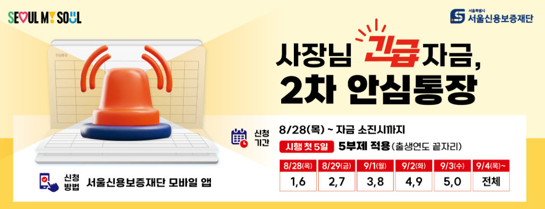 올해 3월 처음 선보였던 안심통장 1호는 출시 두 달도 되지 않아 2,000억 원 전액이 소진될 정도로 큰 호응을 얻었습니다. 특히 생계비, 운영자금 등 단기 유동성이 필요한 소상공인들에게 매우 실질적인 도움이 되었는데요. 이러한 수요를 반영해 서울시는 조건을 개선한 ‘안심통장 2호’를 다시 선보이게 되었습니다.