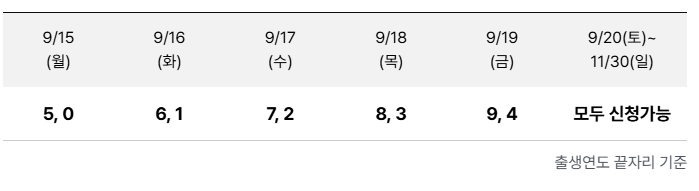 (예: 출생연도 끝자리가 1·6인 경우 월요일 신청 가능)