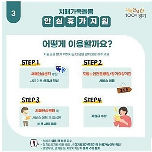 이에 경기도는 한 걸음 더 나아가 실질적 비용 지원까지 결합한 ‘치매가족 돌봄 안심휴가지원’ 사업을 시작했습니다.