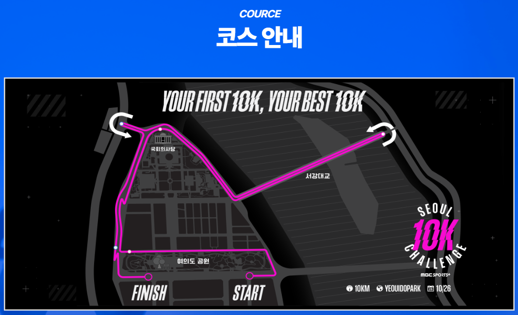 이 코스는 정치, 금융, 방송 등 서울을 대표하는 기능이 모여 있는 여의도를 무대로 하며, 현대적이고 역동적인 서울의 매력을 그대로 담아냅니다. 참가자들은 서울의 상징적인 랜드마크를 달리며 도심 속 축제의 현장을 경험하게 됩니다.