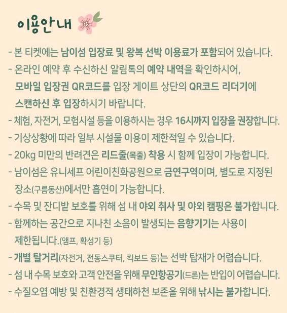 남이섬 방문 시 유의사항