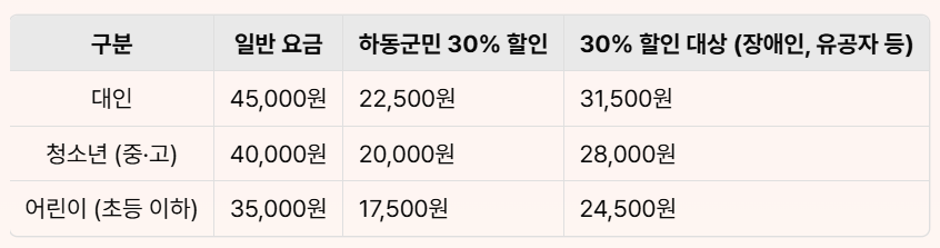 중복 할인은 불가능하며, 할인 증빙 서류(원본)와 신분증 필수 지참