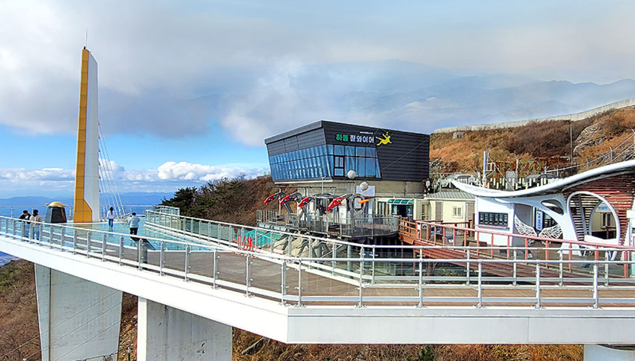중력에 의해 도르래를 타고 경사 케이블을 타고 내려오는 방식으로, 공중을 나는 듯한 자유로운 체험을 제공합니다. 특히 다도해와 지리산의 절경을 동시에 감상할 수 있어 하동 여행의 필수 코스로 자리매김하고 있습니다.