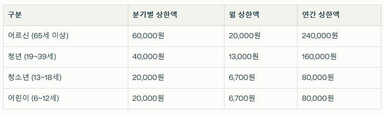 지원금은 연령대별로 차등 책정되어 있습니다. 분기마다 한도가 정해져 있으며, 이를 기준으로 교통카드 사용액만큼 환급됩니다.