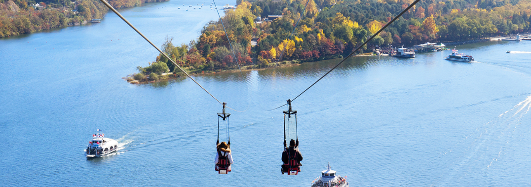 짜릿한 속도로 하늘을 날며 아름다운 남이섬의 풍경을 감상합니다.