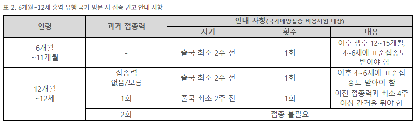 - 여행 최소 2주 전 접종 필요