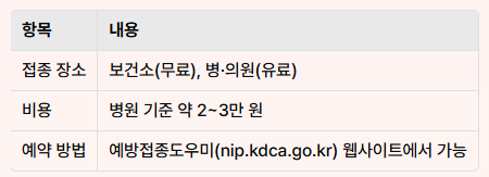 보건소에서는 성인도 무료로 접종 가능한 경우가 많아, 가까운 보건소에 먼저 문의하는 것이 좋습니다.\