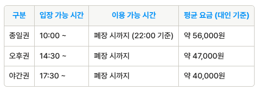 ※ 가격은 시기 및 예약 상태에 따라 달라질 수 있습니다.