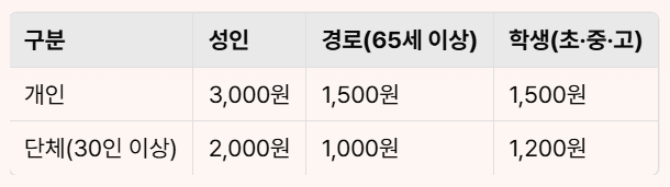 입장료 및 주차요금