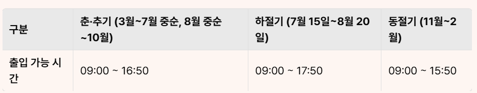 ※ 관람 종료는 마지막 출입 시간 1시간 후까지 가능합니다.