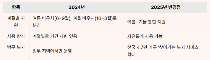 2025년 에너지바우처 주요 변경사항